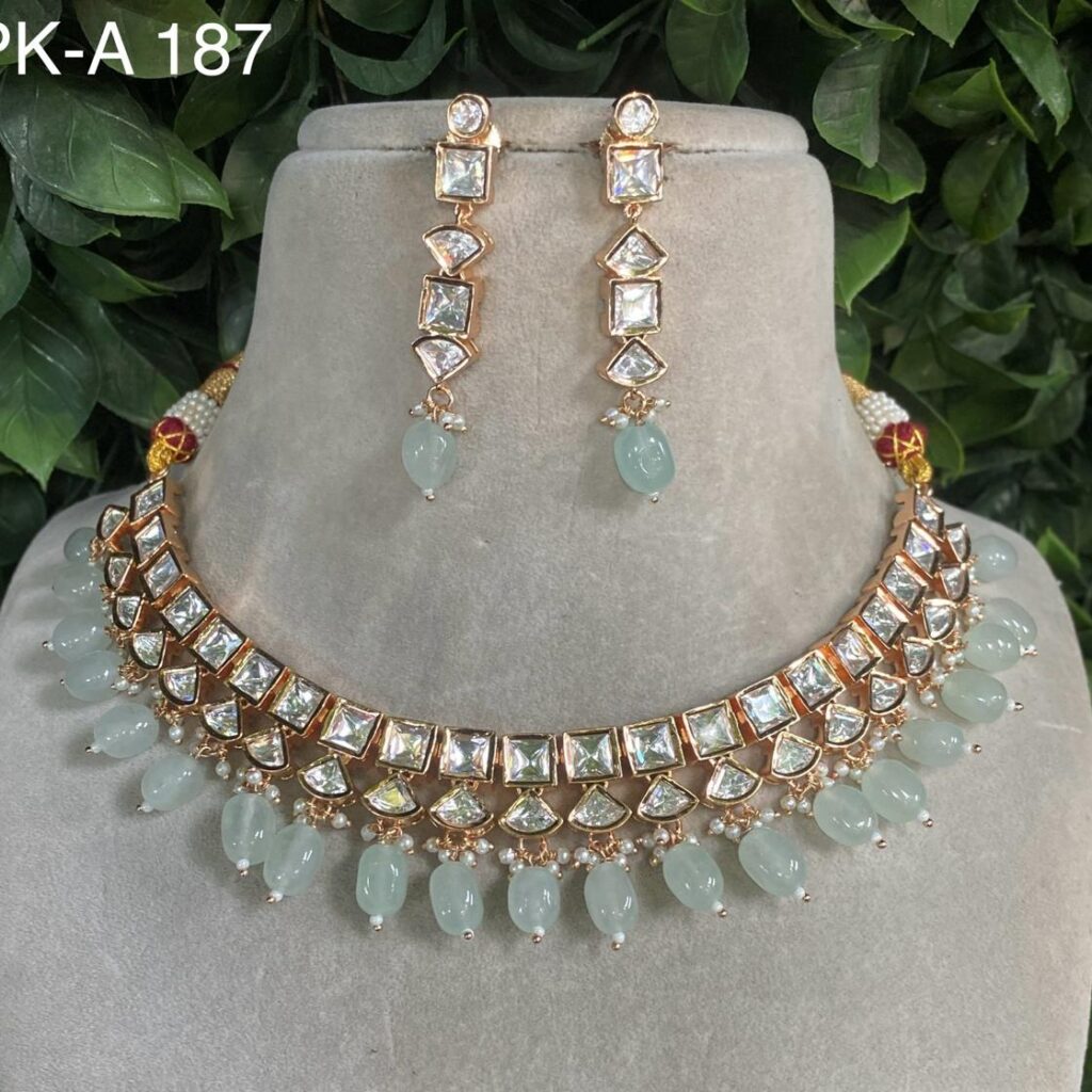 Our heavy-design AD necklace sets with pendants and earrings, and bold brass sets, are perfect for festive occasions, weddings, and celebrations — pieces that truly stand out.